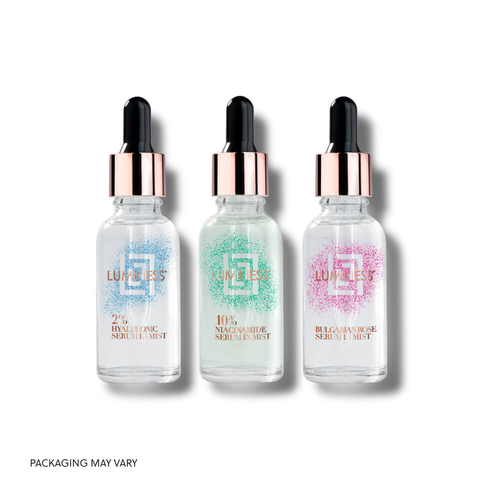 LUMINESS Airbrush Skincare combines clinical strength actives in a clean and water rich formulation. Unlike traditional serums which contain ingredients to thicken and suspend skincare actives causing them to sit on the surface of the skin - our water thin formulas deliver both concentrated active ingredients and essentials directly into your skin.